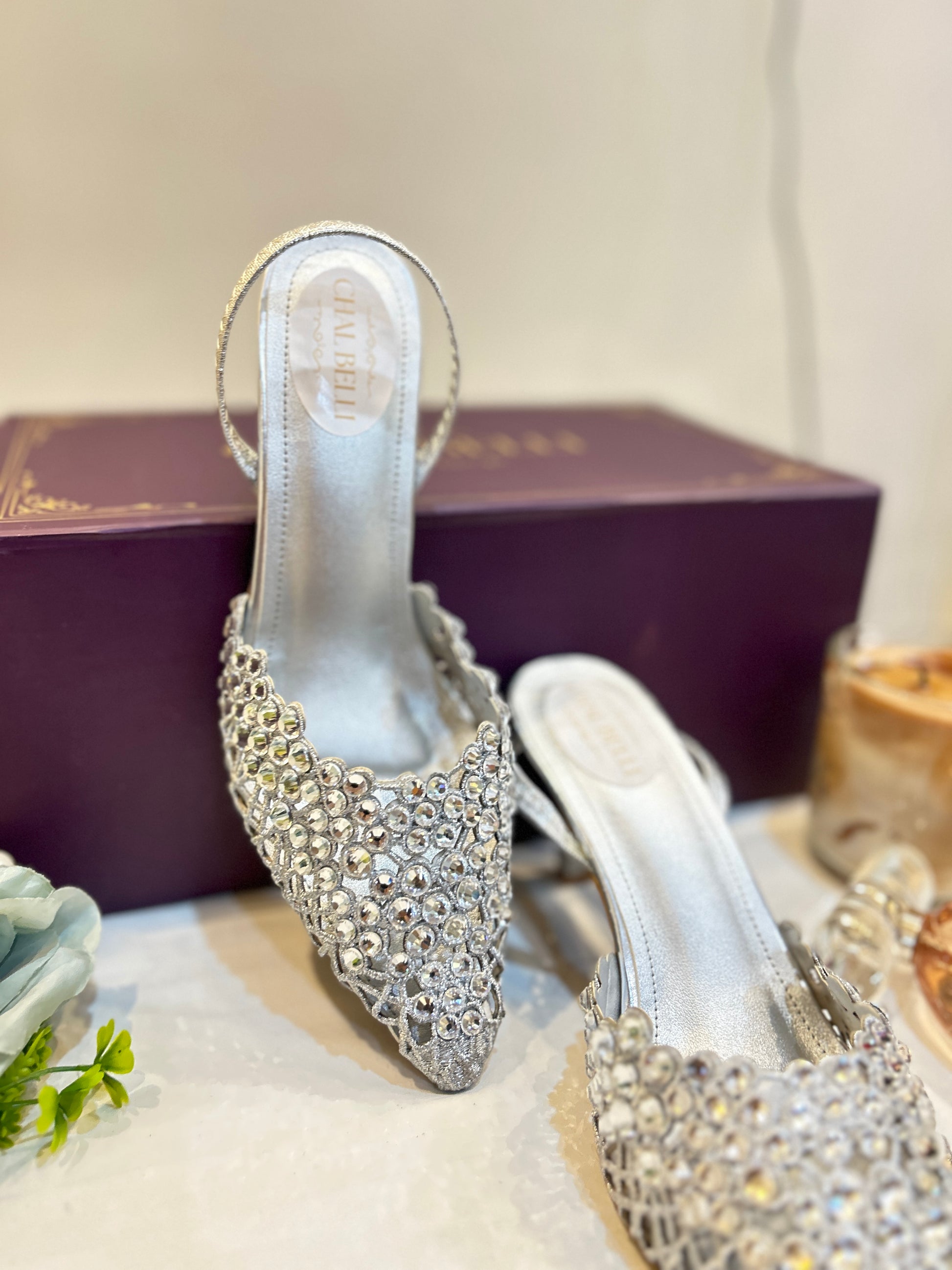 | Color | Silver Base with Clear/Silver Rhinestone Lattice Embellishments |