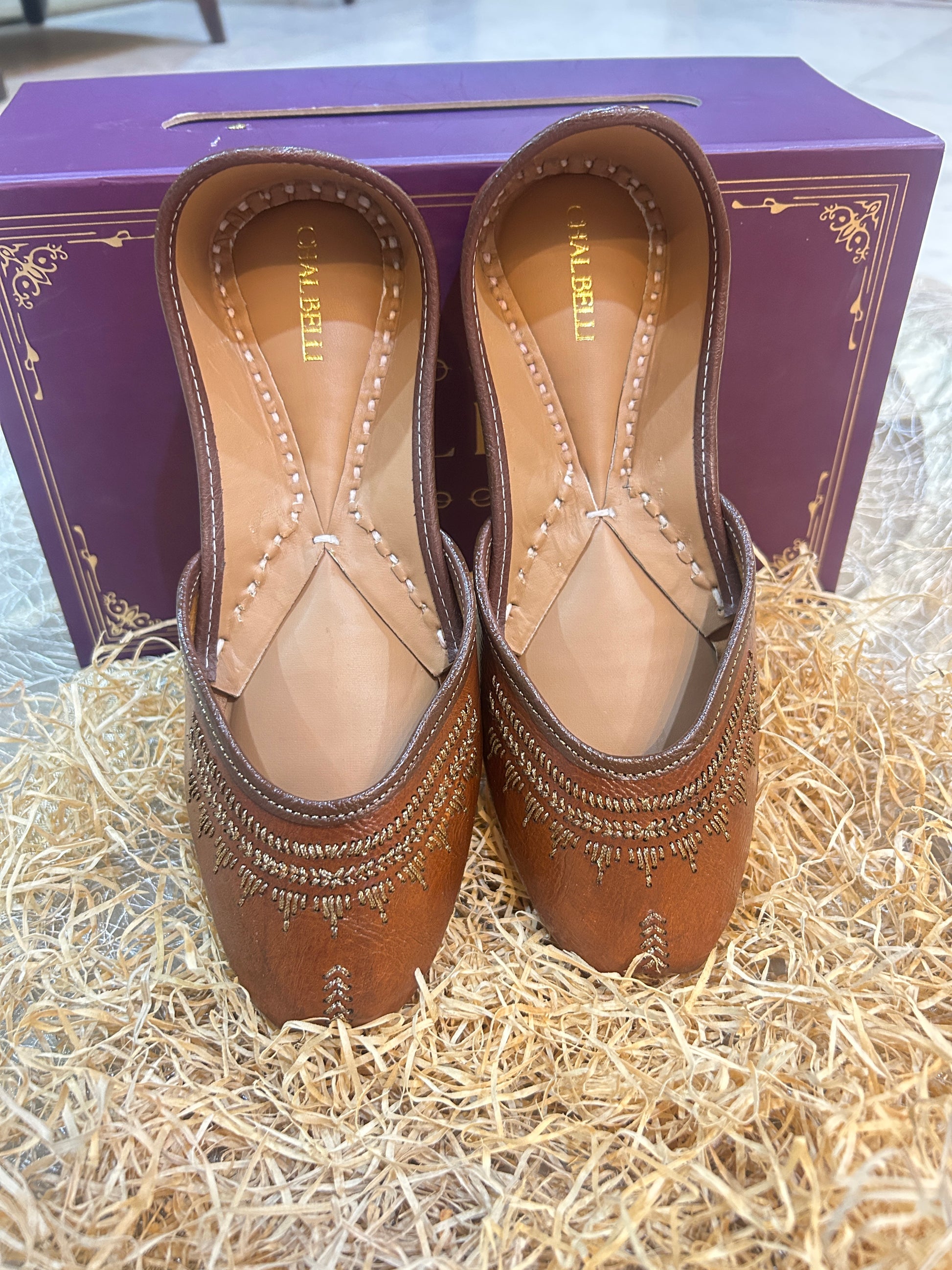 | Design | Classic Punjabi Jutti Silhouette with Simple Zari Stitching |